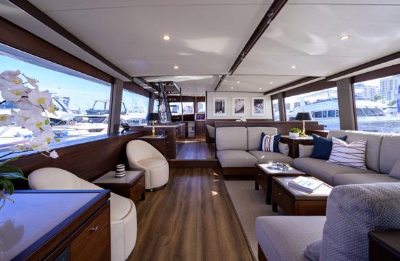 hasn’t had cruising range front of mind. Thanks to a 2,640-gallon fuel capacity, the 85 boasts a nearly 1,000-mile range at 20 knots and a long-legged 3,000-mile range at 10 knots. That efficiency is valuable not just on long crossings, but Richards thinks it will become increasingly important for Americans, with the rise in fuel prices, as they did years ago in his native Australia as well as in Europe.