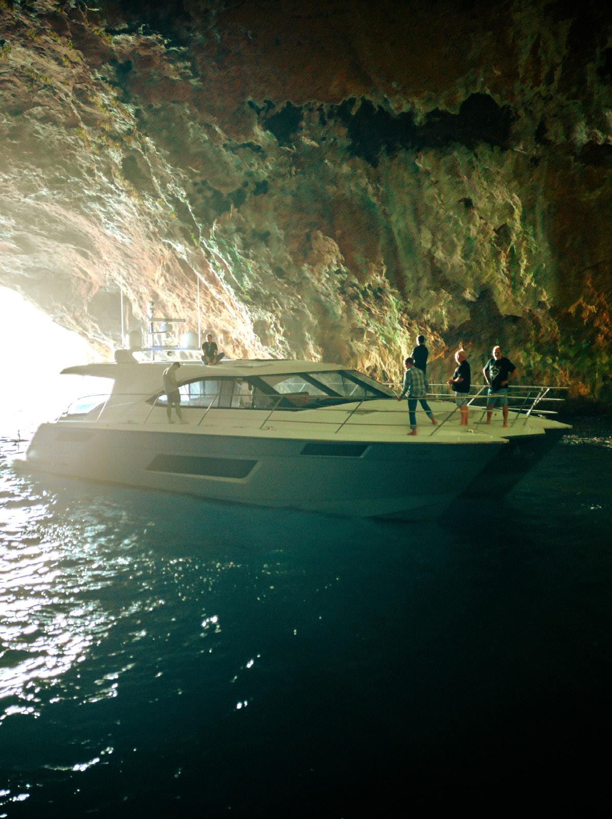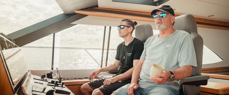 “Over the years, our design team and engineers have faced some interesting challenges. We’ve shortened the flybridge overhang to accommodate fishing rods, created storage space for diving tanks and pumps, installed folding navigation masts to reduce air draught, we’ve even put a hot tub on the fly bridge”, says Mark.