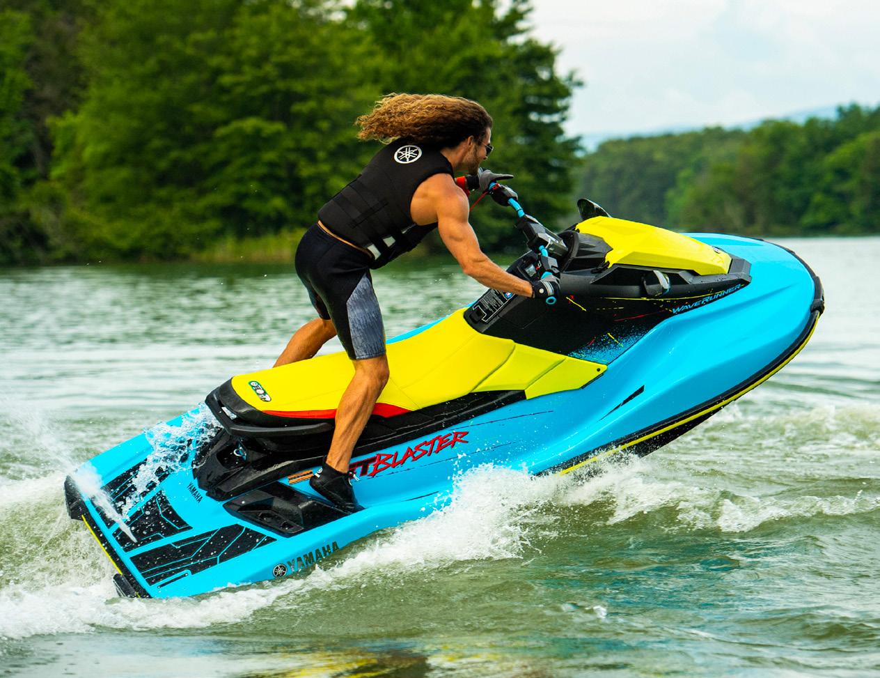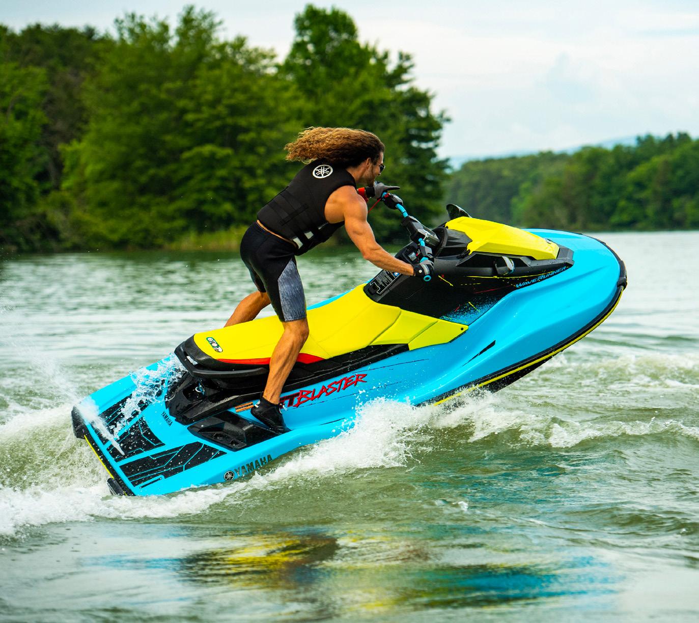 Freestyle your style - Yamaha’s 2023 Freestyle series puts a new spin on your ride. Introduced in 2022, the JetBlaster takes on-water fun to the next level, allowing the rider to perform stand-up manoeuvres, unmatched by any other sit-down craft in the WaveRunner lineup. With its custom-tuned electric trim, built-in footwell chocks and raised action handlebars, this action-packed craft will bring a smile to every rider. For the ultimate in stand-up performance, the legendary four-stroke SuperJet continues to challenge those thrill seekers looking for something unique, that will push their riding abilities to the limits, while delivering 100% pure adrenalin and excitement.