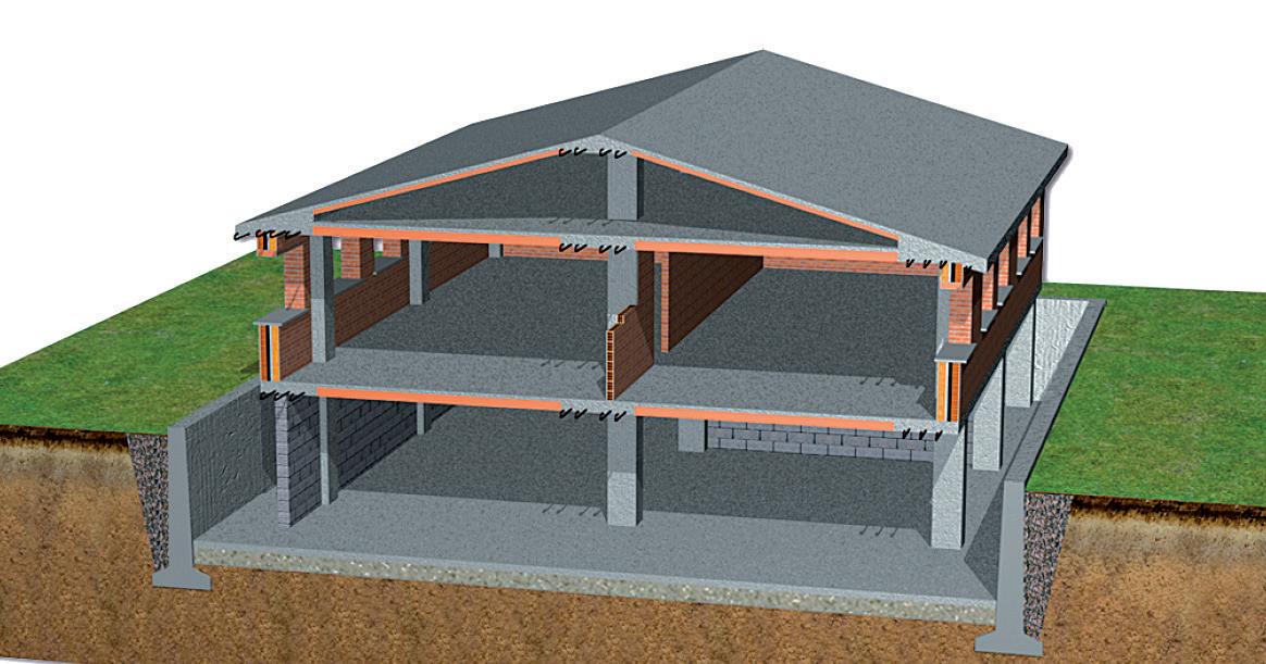 Le strutture a telaio sono generalmente realizzate in calcestruzzo armato. Ma cosa significa esattamente calcestruzzo armato? Il calcestruzzo è un conglomerato artificiale costituito da una miscela di cemento, sabbia , ghiaia e acqua . Come la pietra, possiede ottima resistenza alla compressione, ma non altrettanto alla trazione. L’acciaio, al contrario, ha una eccellente resistenza alla trazione. Poiché in una struttura a telaio sono presenti entrambe le sollecitazioni, prima di versare il calcestruzzo nelle casseforme di legno si dispongono delle armature in tondini di acciaio, con diametro da 5 a 30 mm, in modo che l’armatura si trovi nei punti in cui la struttura è soggetta a trazione. In questo modo l’acciaio equilibra la debolezza del calcestruzzo alla trazione. È questa la tecnologia del calcestruzzo armato o, come si dice più comunemente, cemento armato (C.A.).