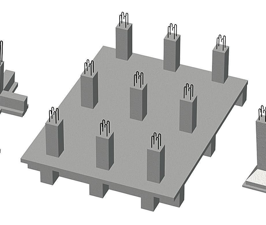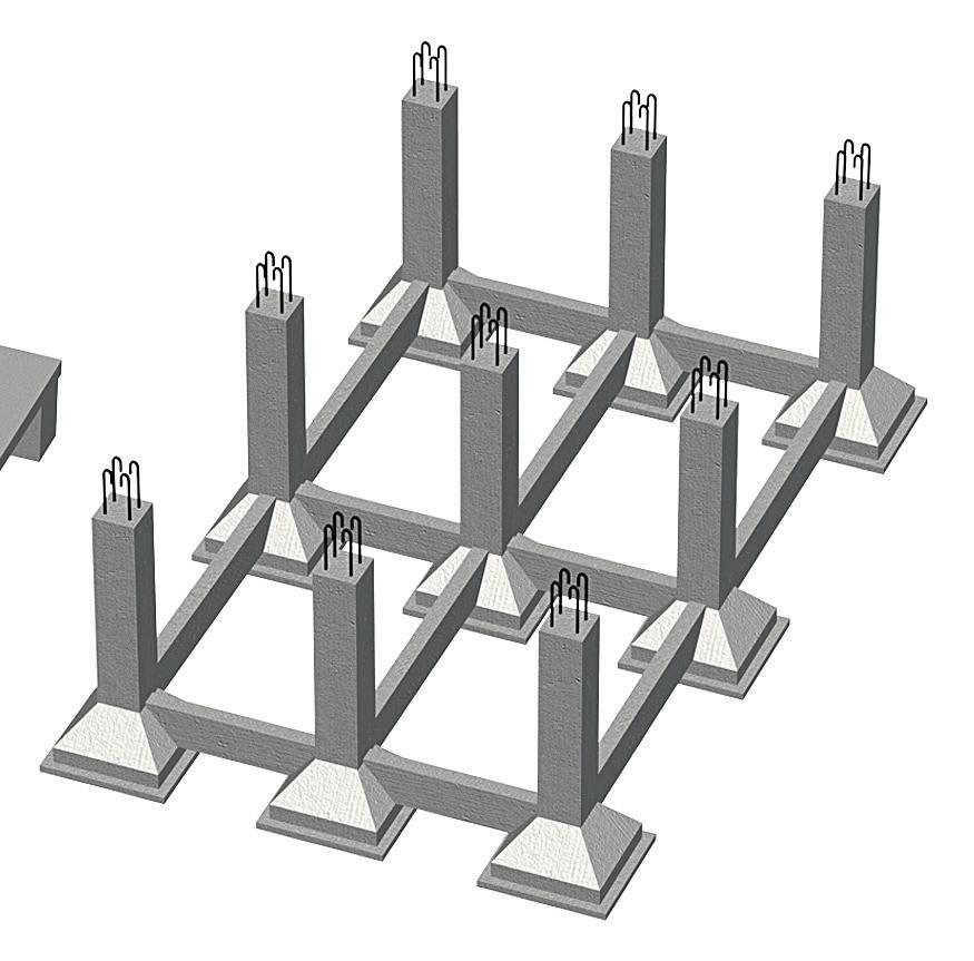 Le fondazioni più comuni sono quelle su plinti, una sorta di larga base per i pilastri a forma tronco piramidale. I plinti sono adatti per terreni in cui lo strato roccioso non sia troppo in profondità.