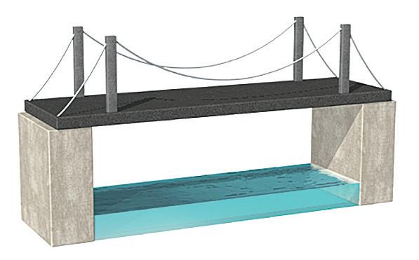 Nel ponte a sbalzo le campate sono costituite da coppie di queste travi che si uniscono al centro della campata. Le travi a sbalzo si reggono da sole, sostenute da un sistema di piloni e ancoraggi che parte dalle sponde.
