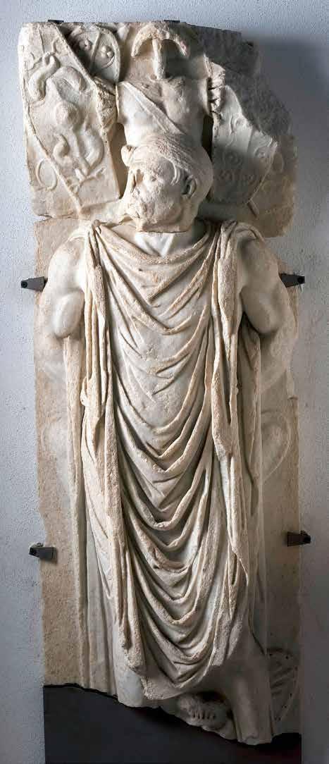 VITA IN VILLA Altorilievo con prigioniero barbaro e trofeo d’armi. Era il rivestimento di una porta o di un arco del Foro dell’antica Bauli (Bacoli), luogo di villeggiatura in età imperiale.