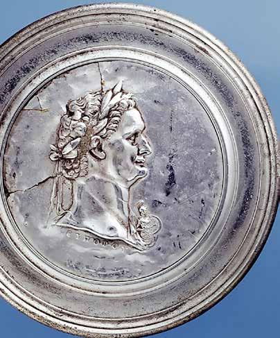 LA MOGLIE Cammeo con l’imperatrice Domizia Longina su pavoni. Domizia ebbe un figlio che morì presto, ma fu divinizzato, garantendole così il titolo di Augusta anche dopo l’assassinio del marito.