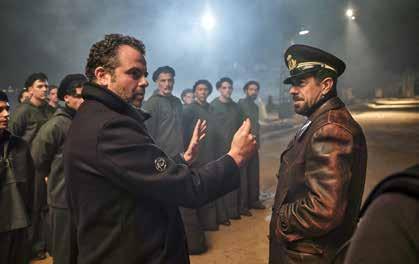 Una scena sul ponte del sommergibile Cappellini A destra, il regista De Angelis si confronta con Favino durante le riprese del film.