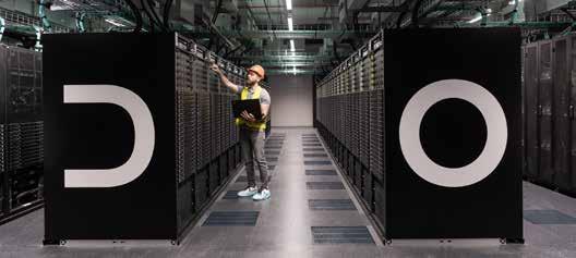 SOTTO CONTROLLO In alto, un tecnico controlla il funzionamento di Leonardo. Sotto, una parte delle condutture idriche: l’acqua serve a raffreddare il supercomputer. A sinistra, l’inserimento di un componente in un rack.