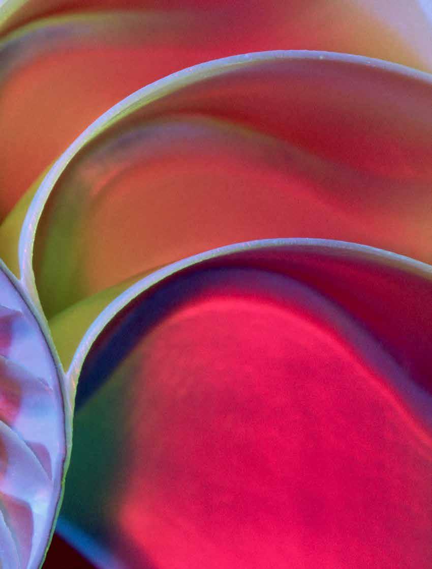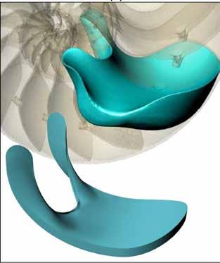 tante camere avvolte a spirale che hanno tutte la stessa forma, anche se il loro volume aumenta andando verso l’esterno (il mollusco vive nella camera più esterna). «Osservando una foto della sezione, la mia studentessa Krisztina Regős affermò che, secondo lei, l’intero corpo 3D della camera non aveva spigoli», continua Domokos. «Era difficile da credere, ma dopo diversi mesi ho trovato la tomografia di un nautilus che dimostrava al di là di ogni dubbio che la congettura di Krisztina era corretta (la forma è messa in evidenza nel disegno nella pag. a sinistra)».