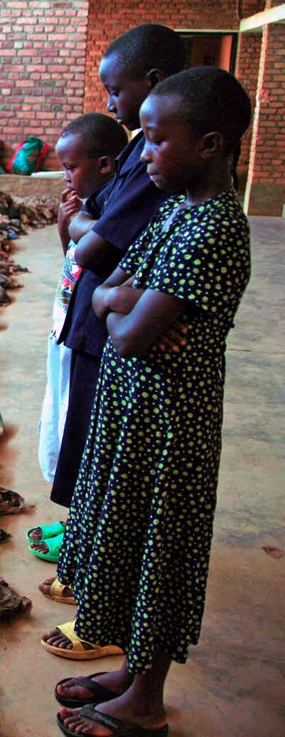 Alcuni bambini, in una chiesa del Ruanda, osservano i vestiti delle persone uccise in quel luogo nel genocidio del 1994.