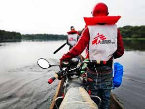 6 Sempre nel Paese africano, le moto sono caricate in piroga, dirette ai centri di Msf, durante un’epidemia di morbillo.