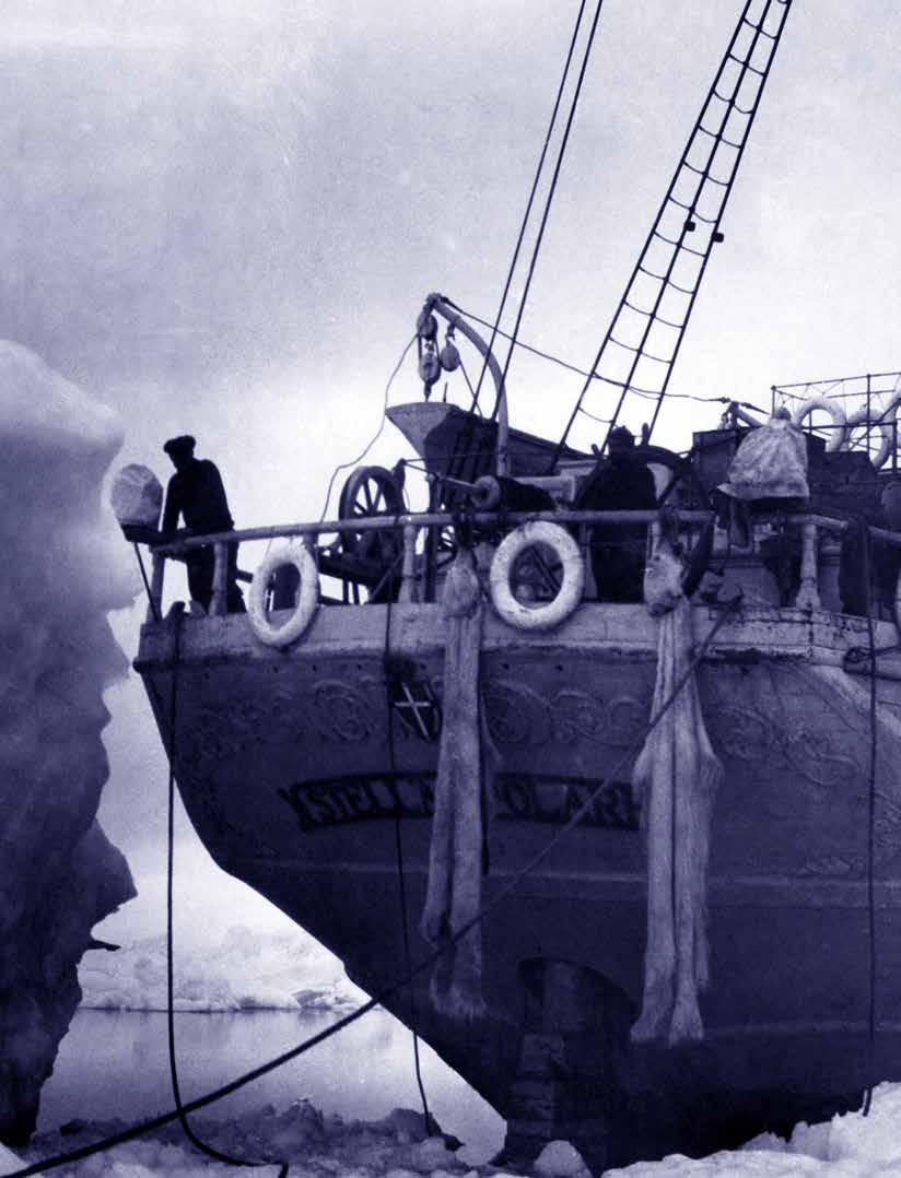 In viaggio Il duca sulla ex baleniera norvegese Stella polare, vicino a un iceberg nel 1900. Nell’altra pagina, Luigi Amedeo, duca degli Abruzzi (1873-1933), durante il tentativo di ascesa al K2, nel 1909.