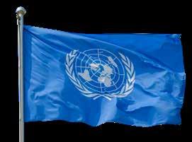 Alla fine della Seconda guerra mondiale, il presidente Usa Franklin D. Roosevelt propose la creazione di un’organizzazione internazionale per mantenere la pace. Nel 1945, i rappresentanti di 50 Paesi si riunirono a San Francisco per definire la nascita delle Nazioni Unite. Per l’occasione, fu creato un emblema da applicare sui tesserini dei partecipanti, progettato dall’architetto statunitense Donal McLaughlin. Il suo disegno, una mappa del mondo circondata da ramoscelli d’ulivo, divenne poi il simbolo dell’Onu. McLaughlin collaborò anche con l’Office of Strategic Services (Oss) nella progettazione dell’aula utilizzata per i processi di Norimberga. Pacifismo. La bandiera delle Nazioni Unite (sotto) è stata progettata per rappresentare l’idea di pace e cooperazione tra i popoli. Lo sfondo azzurro, noto come “UN blue”, fu scelto in contrasto con il rosso, tradizionalmente associato alla guerra, per trasmettere invece serenità e neutralità. Al centro è raffigurata una proiezione azimutale della mappa del mondo vista dal Polo Nord, simbolo dell’equidistanza tra le nazioni e dell’universalità dell’organizzazione. In origine il Nord America occupava il centro della mappa, ma nella versione definitiva si decise di porre il meridiano di Greenwich (longitudine zero) al centro, per garantire maggiore equilibrio nella