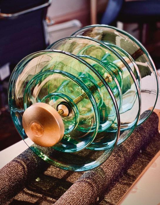 “This was the start of a seven-year project to final installation journey.” Coles was encouraged by the client to investigate the use of reclaimed glass insulators for the light fixture’s design. Coles explains further: