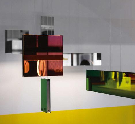 The Mirror family comes in three different formats: small, square, wide— and three finishes: clear mirror, smoked grey mirror, multicolour mirror. In combination, they float like mobiles and spark illusional worlds. Either configurations - single or in groups - Mirror feeds the inner narcissist and is the perfect selfie opportunity at Milan Design Week.