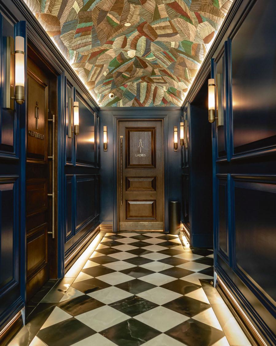 to illuminate the ornate arches, but we couldn’t recess lighting within the floor. We worked with Studio Two to create a discreet box at the base of the arches to recess the uplights within. Where possible we integrated within joinery items to allow us to illuminate existing and new features of the restaurant.”