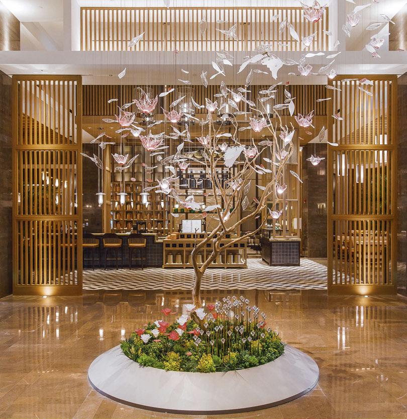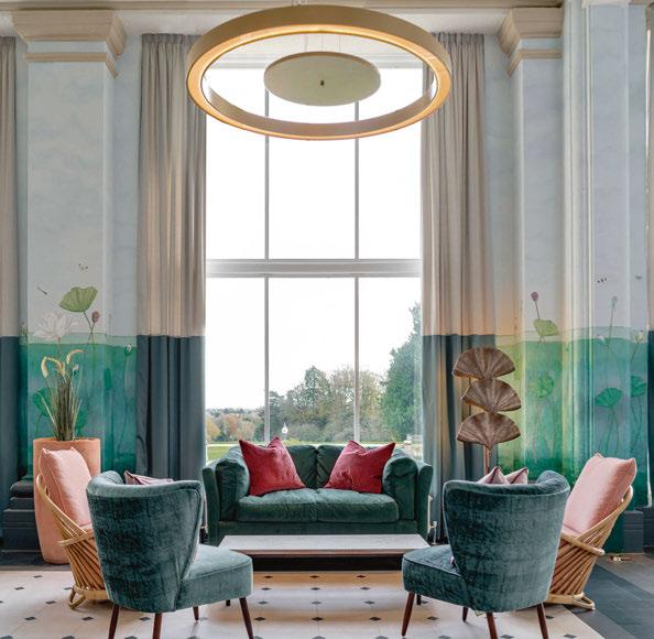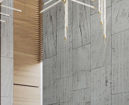 lighting, specifically designed to create mood and atmosphere from day to evening. The spaces are then embellished with opal glass bespoke fittings with touches of brass to add a subtle glow to the landscape.