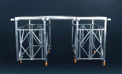The Prolyte Rolling Stage is designed for versatility and ease of use, making it suitable for both flat and elevated stage setups. Its modular, foldable design reduces setup time and offers an efficient, customisable staging solution for events of all sizes. The load-bearing wheels enable the entire stage to be rolled with the maximum allowable load, while rotatable 4-way adapters minimise the need for individual support frames. This design creates open pathways beneath the stage, ideal for storage or equipment setups. www.prolyte.com