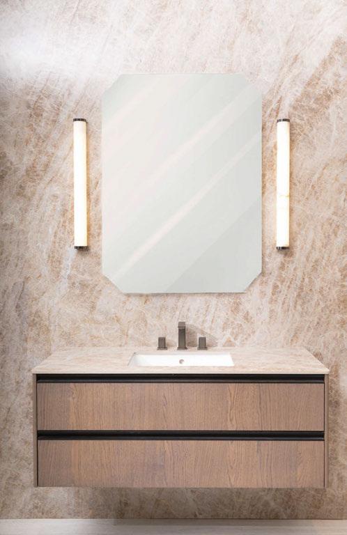 Inspired by the elegance of luxury hotel living, the modern classic bathroom range combines timeless forms with contemporary precision. Encompassing scalloped mixer edges, ornate octagonal mirrors, luxuriously profiled furniture and wall lighting crafted from Spanish alabaster and brass, the Carlyle range provides specifiers with a cohesive and complete bathroom solution, ensuring design continuity throughout. Brassware is available in a refined palette of finishes, including Chrome, Brushed Nickel, Soft Bronze, PVD Oyster and Anthracite – providing versatility for both classic and contemporary design schemes. Meanwhile the bathroom furniture is available in three finishes: Dark Oak with Soft Bronze profile, Light Oak with Oxide profile and Matt White with brushed bronze profile. Positioned as a luxury product range, Carlyle has been developed with a premium finish in mind. www.bagnodesign.it