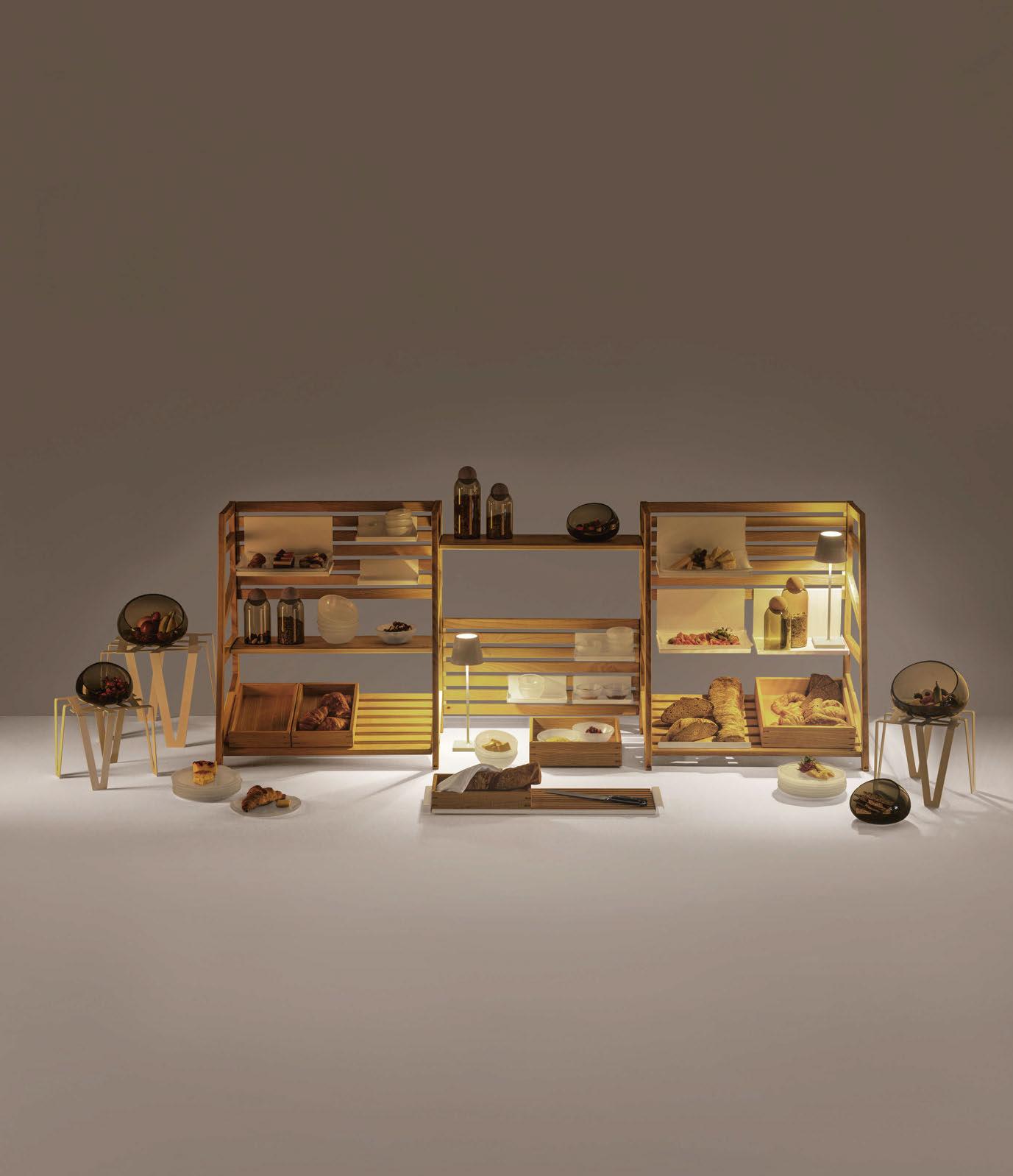 With simple lines and painstaking finishes, the En Scène collection by Revol has a coherent, intuitive architectural construction to allow hospitality professionals to showcase the creativity of their buffet displays. Comprising metal and oak risers that act as the foundation for various combinations of trays and maple wood boxes, which provide sleek platforms for food presentations, the studio has developed a new oblong tray designed to bridge the gap between round risers as well as display multiple juice fountains and salad bowls. Revol has been at the forefront of the industry since it was first founded in the South of France in 1768.