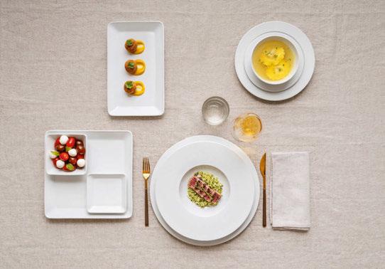 Raio by Costa Verde is specifically designed for banqueting, meeting the demands of a sector that requires durability and strong aesthetics. An intelligent design allows for easy stacking, storage and transport, while a reinforced material ensures longlasting durability and robustness, even under intensive use. Moreover, the Raio collection’s contemporary aesthetic makes it adaptable to a range of dining environments. At Costa Verde, performance is approached holistically. From visual impact to tactile sensation, and from practical use to economic value, each piece of porcelain is crafted to deliver a complete sensory experience. pro.costa-verde.com