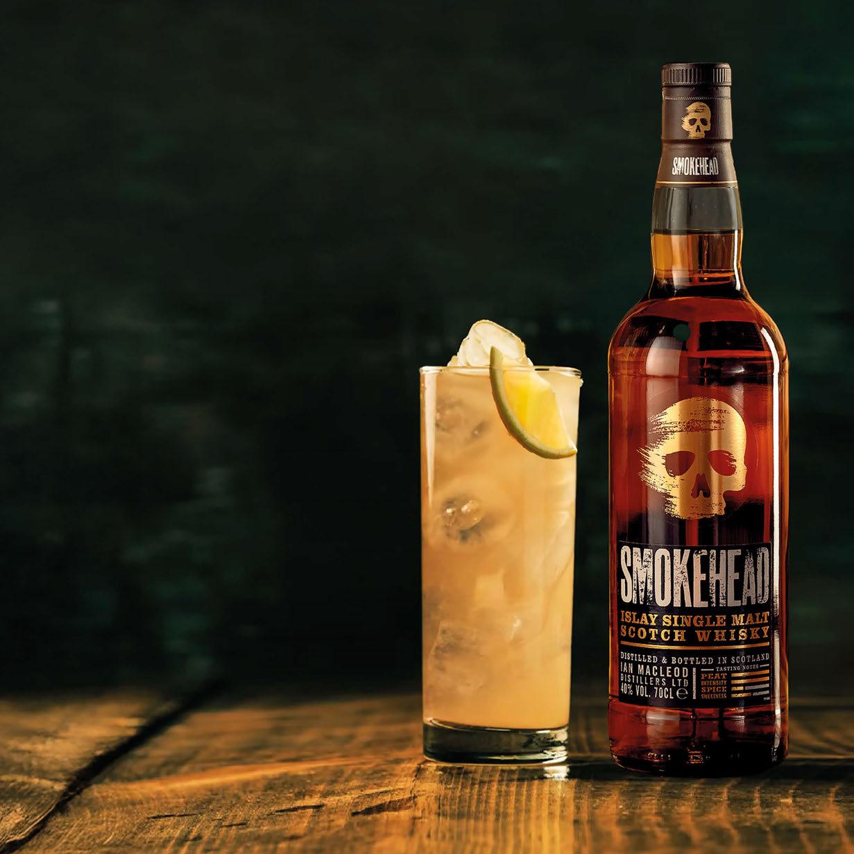 Smokehead Islay Single Malt Whisky, Peach Puree with London Essence Lemonade