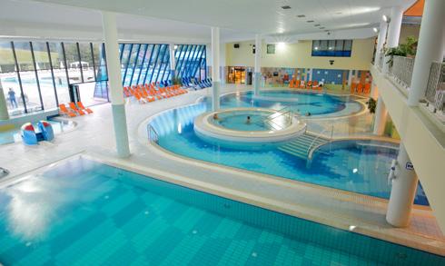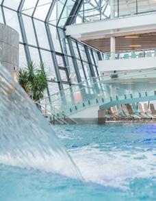 Er besteht aus zwei miteinander verbundenen Teilen: Der westliche, ruhige Teil verfügt über ein Schwimmbecken mit Massage-Wasserfällen und einen angenehm warmen Whirlpool. Der östliche Teil ist perfekt geeignet für Familien mit Kindern. Er umfasst ein großes Schwimmbecken, das von einem Kinderbecken mit lustigen Wasserattraktionen umgeben ist, und ein Erlebnisbecken mit Wildwasserkanal, Sprudel und Wasserrutschen. Gegen Aufpreis steht Ihnen auch ein Saunabereich mit u. a. finnischer und türkischer Sauna, Infrarotsauna, Salzraum und Hamam zur Verfügung.