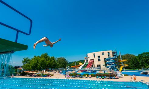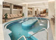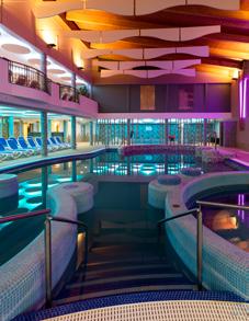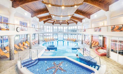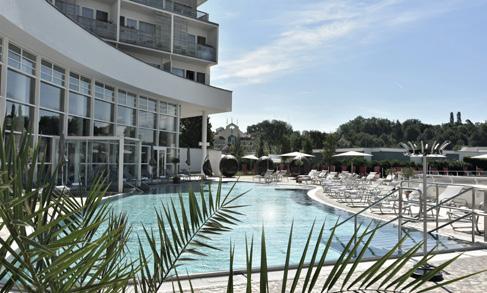 becken mit lustigen Wasserattraktionen umgeben ist. Ein Erlebnisbecken mit Wildwasserkanal und Sprudel sowie Wasserrutschen sorgen für Spaß und Action bei Groß und Klein. In den Sommermonaten kann der saisonale Außenpool im Nachbarhotel mitbenutzt werden. Gegen Aufpreis steht Ihnen ein Saunabereich mit finnischer Panoramasauna, türkischer Sauna, Infrarotsauna, Kräuter-, Trockenund Biosauna, ein Salzraum sowie ein istrisches Hamam zur Verfügung.