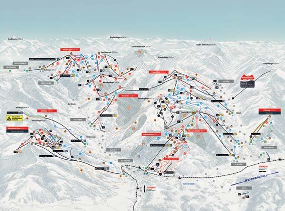 Skigebiet Seite Höhenlage in Meter Pistenkilometer gesamt blaue Pisten in km (leicht) rote Pisten in km (mittel) schwarze Pisten in km (schwer) Freeride/Skitouren (in km) Lifte gesamt Seilbahnen/Gondeln Sessellifte Schlepplifte/Übungslifte VORARLBERG Silvretta Montafon 40–41 700 –2.430 141 60 45 8 28 35 10 18 7 TIROL Ski Arlberg – St. Anton 45 1.304–2.811 302 130 122 50 200 87 16 44 27 AchenseeKarwendel 64–65 950–1.510 12 6 6 4 1 3 Fieberbrunn im Skicircus Saalbach Hinterglemm Leogang 63 840–2.096 270 140 112 18 • 70 29 21 20 Hopfgarten/Skiwelt Wilder KaiserBrixental 61 620–1.829 270 114 120 36 • 83 17 33 33 HochzillertalHochfügenSpieljoch 64 600–2.350 111,7 33,3 52,1 19,3 7 50 9 13 28 Innsbruck IglsPatscherkofel 58 1.009–1.965 19 5 10 4 • 6 1 5 KitzSki Kitzbühel/Kirchberg 59–61 780–2.004 233 102 72 20 39 57 12 27 18 PitztalHochzeiger 49 1.450–2.500 40 12 20 8 7 9 1 4 4 See / PaznaunIschgl 45 1.042–2.570 42,5 9,5 25 8 • 11 3 2 6 SerfausFissLadis 50 1.200–2.820 214 47 112 28 27 38 12 16 10 Ski Arena Seefeld2) 46–48 1.140–2.064 34 22 9 3 37 3 5 29 Sölden Längenfeld/Ötztal 51 1.350–3.340 143 70 45 28 • 31 8 14 9 St. Johann in Tirol/Oberndorf 62 659–1.604 40 16 21 3 • 11 4 3 4 Stubaital3) 52–57 1.000–3.210 109 58 41 10 24 45 9 10 26 Osttirol Großglockner Resort KalsMatrei 68 920–2.403 44,6 9,5 24,5 6 4,6 17 3 6 8 SillianHochpustertal 66–67 1.100–2.407 22,4 5,6 15 1,1 0,7 7 2 3 2 St. JakobBrunnalm 66 1.400 –2.525 23,7 4,7 11,1 1,2 6,7 7 1 2 4 Kärnten Bad KleinkirchheimSt. Oswald 70–75 1.100–2.039 103 18 77 8 24 4 8 12 Nassfeld 69 610–2.200 110 30 69 11 • 30 5 9 16 SalzburgerLand Gasteinertal4) 87–90 843–2.650 197 66 103 7 21 41 14 16 11 Weißsee Gletscherwelt 85 804–2.600 23 6 15 2 • 9 2 2 5 Zell am SeeKaprun5) 78–84 760–3.029 138 59 51 28 10 51 19 15 17 Zillertal Arena Krimml/Hochkrimml 86 1.250–2.500 149,7 46,5 88 11,8 3,4 52 14 20 18 Oberösterreich Dachstein West6) 91–92 780–2.100 160 57 95 8 3,6 70 9 24 29 HinterstoderHöss 92–93 600–2.000 40 12 18 10 • 12 2 2 8 Steiermark Schladming 4BergeSkischaukel 94–96 745–2.015 123 47 68 8 47 8 22 16