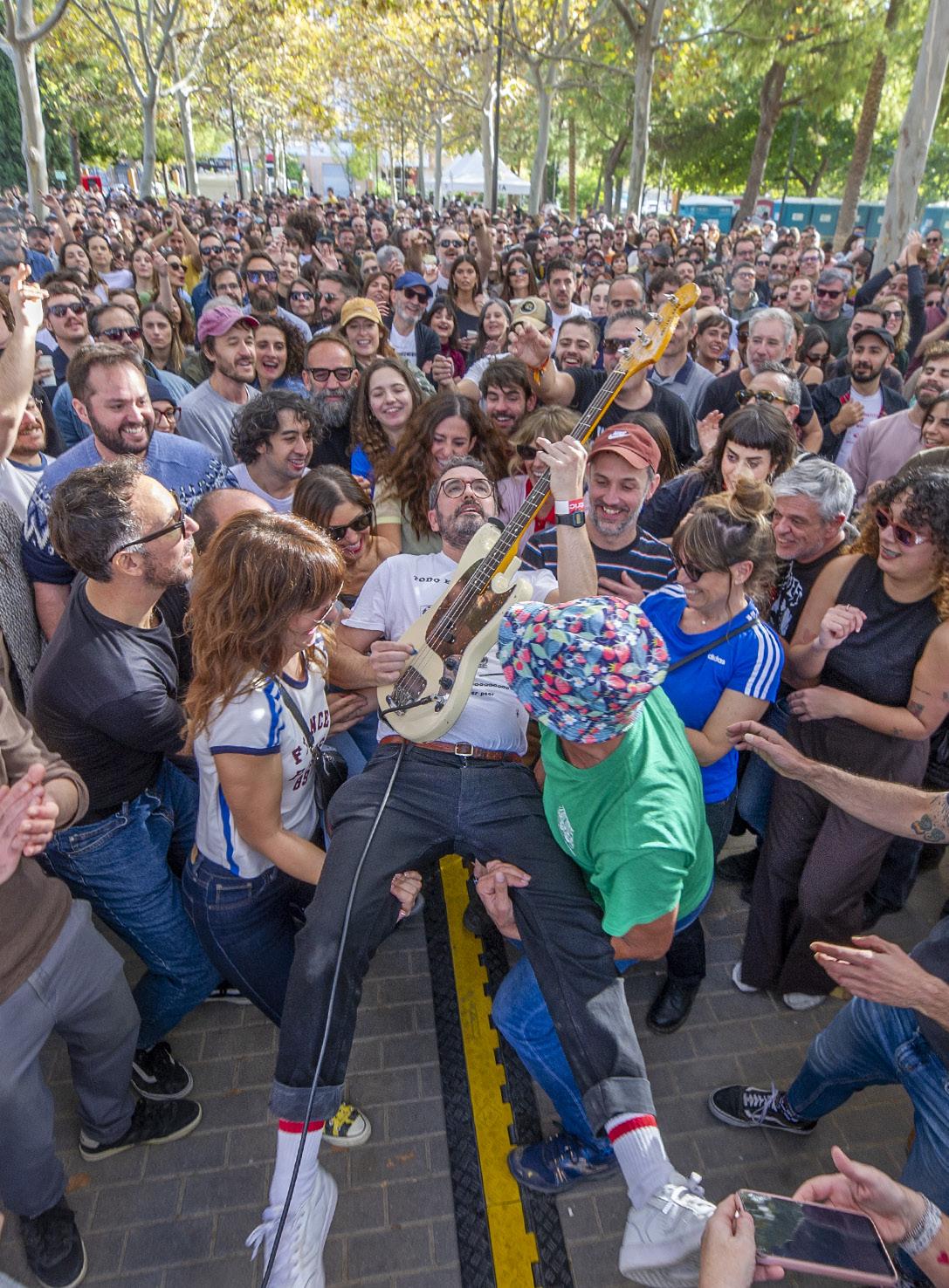tocado en cumpleaños, bodas, funerales o fiestas de barrio. En pleno confinamiento incluso llegamos a tocar en el cumpleaños de un niño de seis años, actuando en su calle para que pudiera vernos desde la ventana”, recuerda Mathew. Tras más de 600 actaciones, han compartido cartel con algunos de sus referentes: Iggy Pop, Sex Pistols, Blondie o The Libertines, ganándose el respeto de Paul Weller o Green Day, que han elogiado públicamente su propuesta. MS
