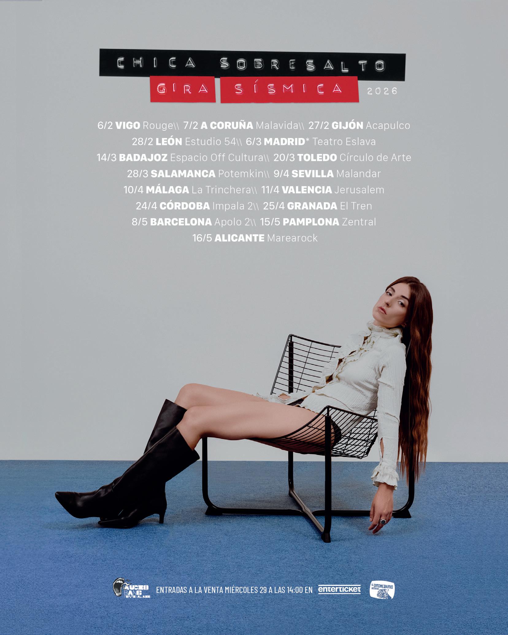 l Granada 06 marzo. Planta Baja l Salamanca 13 marzo. Teatro Juan de la Enzina l A Coruña 18 marzo. Sala Pantalán (Vibra Mahou) l Vigo 19 marzo, Supersonic. (Vibra Mahou) l Valladolid 21 marzo. Vibra Mahou Fest l Vilagarcía de Arousa 29 marzo. Achegate ao Solon l Benicàssim 02-04 abril. SanSan Festival l Gijón 18 abril. Gijón Sound l Lugo 24-25 abril. FIV de Vilalba l Málaga 22-23 mayo. Oh See! Málaga l Zamora 30 mayo. Hurra Romería Pop l Palencia 12 junio. Palencia Sonora l Vigo 10 julio. PortAmérica l Ponferrada 10-12 julio. Planeta Sound l Torrevieja 31 julio-02 agosto. Low Festival l Cádiz 05 agosto. Concert Music Festival l Aranda de Duero 08 agosto. Sonorama Ribera l Guadalajara 28 agosto. Festival Gigante l Miranda de Ebro 04-05 septiembre. Ebrovisión l Zaragoza 26 septiembre. FIZ Festival l Cornellà 03 octubre. Sala Ramón Romagosa l Madrid 16 octubre. La Riviera
