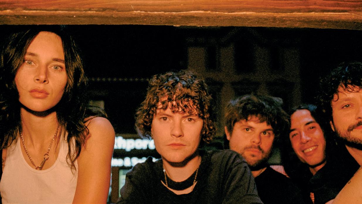 UNA DE LAS COSAS que me llaman la atención es el uso de la guitarra acústica como elemento esencial del grupo. “Creo que le da mucha dinámica a la interpretación. Hay cosas que puedes hacer con una acústica que es imposible conseguir con una eléctrica: distintas capas de emoción. No queremos que se nos encasille o vernos limitados por el hecho de ser un grupo de rock. Y la guitarra acústica nos ayuda en esto. Creo que llegamos a ello después de escuchar mucho a Bright Eyes, Elliott Smith y esos grupos que usan acústica e incorporan géneros como el folk, que meten aspectos de cantautor en arreglos más desarrollados. Es una pena que no se vean más”. Ethan cita artistas tan distintos como Tom Waits, Mitski y Fiona Apple como referentes vocales. Y admite que el sarcasmo que domina las letras de este debut, sin ir más lejos en canciones como el single “I’m Your Fiend”, puede ser más fácil que la vulnerabilidad que hay en una canción como “House”. “Es cierto que, a mí, como ser humano, me resulta más di-
