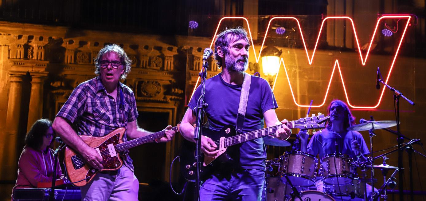 Cogemos aire en una Plaza Alfonso X El Sabio llena hasta la bandera, con uno de los platos fuertes de esta edición, la banda asturiana pionera del “indie” nacional primigenio, Australian Blonde, que revisan de principio a fin su trabajo de presentación, disco imprescindible del género que celebra su 30 aniversario, “Pizza Pop” (93). Francisco Nixon a la cabeza, Paco Loco dándolo todo a la guitarra y la banda al completo en perfecto estado de revista, haciendo que cada una de las composiciones suenen con la frescura y energía de sus primeras veces, con la diversión y la nostalgia intacta en el ambiente. De la energía salvaje de la pista que da nombre a la banda, “Australian Blonde”, a ese “Straight Ahead” en el que Dinosaur Jr. y Daniel Johnston (siempre presentes en el sonido de la banda) se funden más que nunca, pasando por la sentida montaña rusa sentimental de una “I Want You” que pellizca por dentro, o