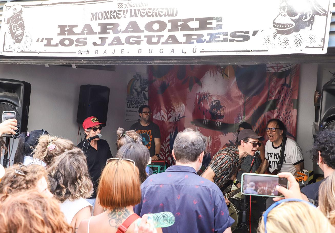 hasta de los más puristas de la peña, pasando por encrucijadas en las que el blues y el flamenco aúllan a la par en la puerta, como en el “Al infierno que vayas” final, pasando antes por ese “Ataúd” perdido y la pregunta pertinente de “¿Quién va a enterrar ahora al muerto?”, o esa resplandeciente oscuridad con latido de vals de “Ruina”, cantada a medias con Eugenia Cervialla. Gloria para Pedro de Dios y sus raíces a plena luz del día. Y no olviden escuchar su ultimísimo “Cantes Malditos” (24), junto al cantaor Antonio Fernández, quizás el primer gran disco en el que blues y flamenco se funden a la perfección, con extra de negritud marca de la casa. Imprescindible. Mini descanso para comer y recargar batería para afrontar la larga jornada que nos espera, con conciertos que se entrecruzan y solapan en diferentes lugares. Primera parada para echarnos un cantecito con Paco Loco y compañía en el mítico Karaoke “Los Jaguares”, en el pequeño escenario Garaje Bugalú, con la calle colapsada de gente y buen rollo a cada paso, cantando todos a viva voz, tema a tema. De “Suspicious Minds” a “La Chica de Ayer”, pasando por esa enérgica pregunta planetaria sin respuesta lanzada al aire del Puerto de Santa María, “¿Qué puedo hacer?”, con la que huimos de allí antes de que sea tarde, arrastrando y cantando sin darnos cuenta todo lo que le sigue (“...si después de tanto tiempo / no te dejo de querer, / y si después de