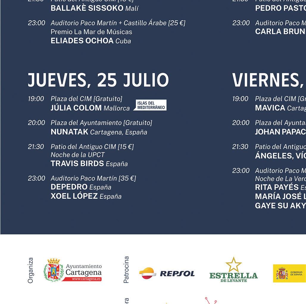Eliades Ochoa, Julieta Venegas, Carmen Consoli, Baiuca, Joon, Ana Tijoux, Travis Bird, Buzz´Ayax, Carla Bruni, Marisa Monte, Ichiko Aoba, El Caribefunk, Nunatak... www.lamardemusicas.cartagena.es
