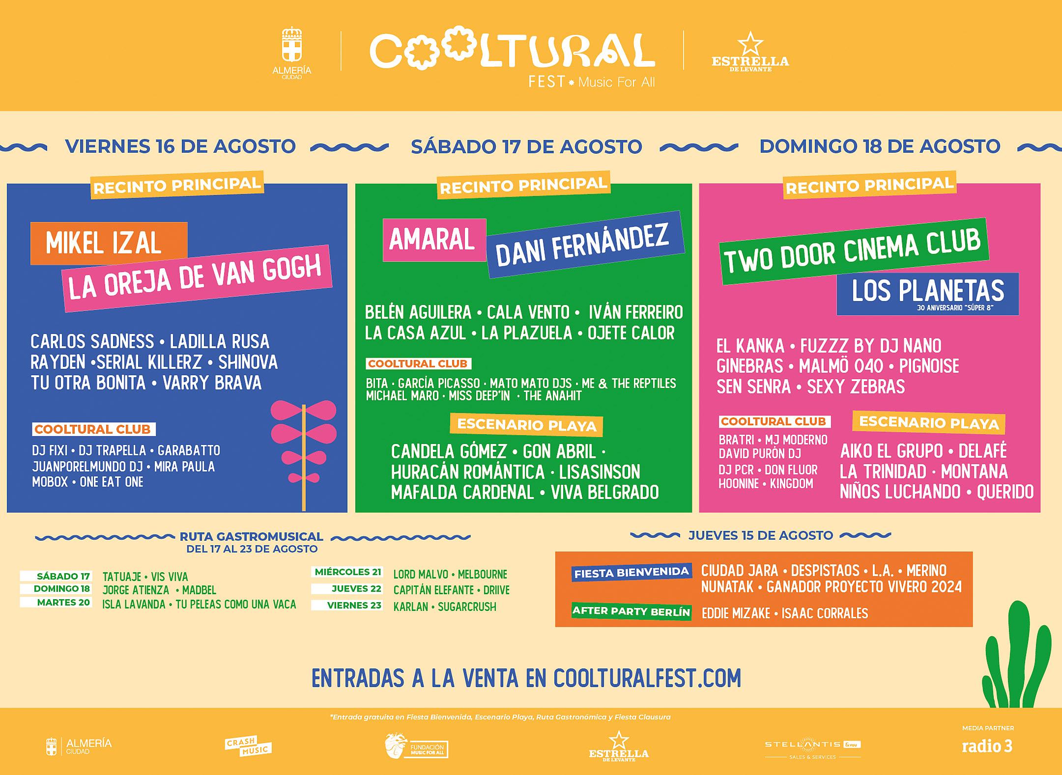 Mikel Izal, La Oreja de Van Gogh, Amaral, Dani Fernández, Two Door Cinema Club, Los Planetas... www.coolturalfest.com