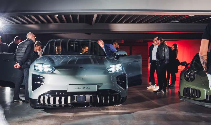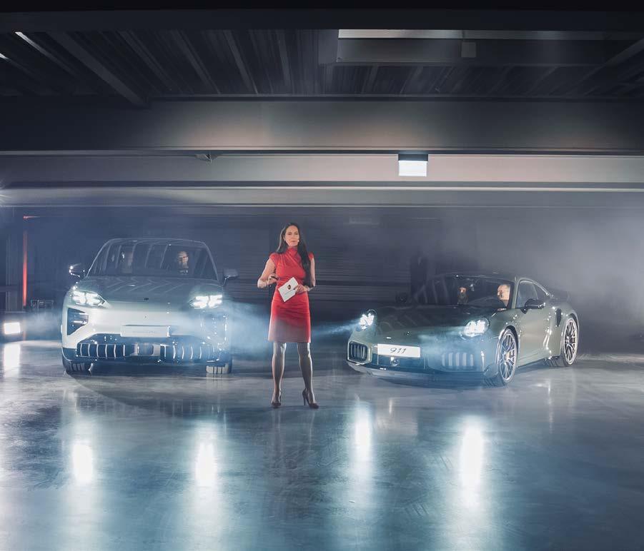 Der Abend, der charmant moderiert wurde von Doris Melchner, stand ganz im Zeichen der Performance. Unter dem Motto „Ein Abend. Drei Ikonen. Pure Emotionen“ wurden zwei der aktuell faszinierendsten Modelle der Marke spektakulär inszeniert: der neue Porsche Cayenne Electric und der neue Porsche 911 Turbo S. Dramatisch choreografierte Präsentationen, eindrucksvolle Licht- und Soundmomente und die unverwechselbare Silhouette der Fahrzeuge sorgten für Gänsehaut und begeisterte Reaktionen im Publikum. Neben automobilen Highlights überzeugte auch das exklusive Catering, das den Gästen kulinarische Genussmomente auf höchstem Niveau bot. In stilvollem Ambiente wurde genossen, angestoßen und über die Leidenschaft für Performance, Design und Innovation gesprochen – Werte, die Porsche seit jeher prägen.