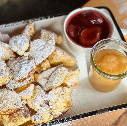 der mit einem saftigen Nackenstück und einem knusprigen Bauchstück, garniert mit lockerem Kartoffelknödel und Krautsalat, nicht nur anspruchsvolle Einheimische überzeugt. Daneben gibt es spannende Neukreationen wie die gefüllten, veganen Teigtascherl mit Schwammerl und Trüffelschaum.