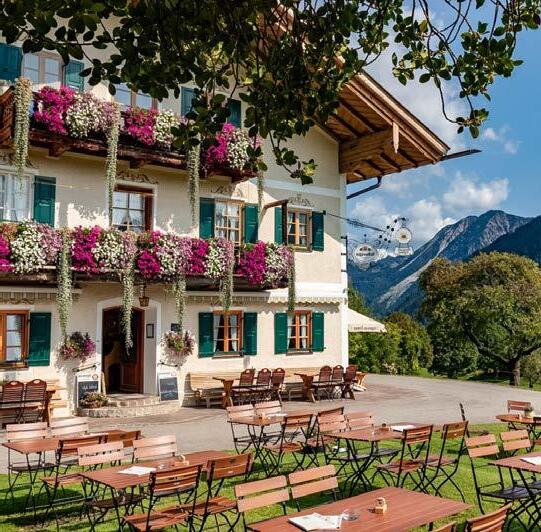 „1996 stellten meine Eltern die ersten Tische auf die Wiese, um Wanderer und Gäste zu versorgen. Seither gibt es das Hofcafé, das immer weiter ausgebaut wurde. Später errichteten sie das Summahäusl, um auch für größere Gästezahlen, z.B. bei Hochzeiten oder Geburtstagen, Platz zu haben“, erzählt Sepp Winkler. „Ich war von klein auf dabei und mischte mit, wenn meine Mutter die Kuchen machte, meine Eltern die Gäste bewirteten und die Tiere versorgten. Für mich war es schon immer klar, dass ich die Tradition weiterführen möchte.“ So richtete er sich mit seiner Ausbildung darauf aus, den Betrieb zu übernehmen. Er machte eine Konditorausbildung und besuchte danach die Almakademie, um den landwirtschaftlichen Teil des Betriebs zeitgemäß zu führen. Sepp ist schon lange in den Betrieb eingebunden, schon früh wurden Entscheidungen gemeinsam getroffen. Die Kaiserschmarrnhütte im Biergarten, eine kleine Showküche für die begehrte Mehlspeise, war vor einigen Jahren Sepps Idee. Für den Kaiserschmarrn, die selbstgemachten Kuchen und Torten, deftige Brotzeiten sowie die herrliche Bergkulisse ist