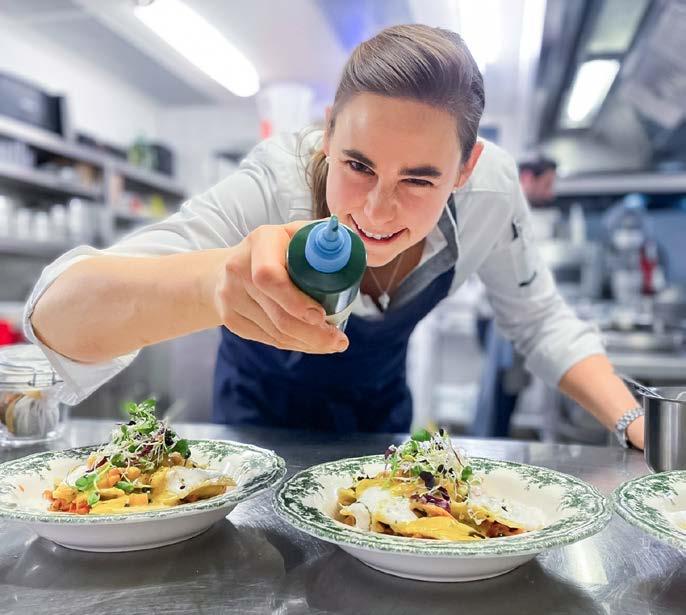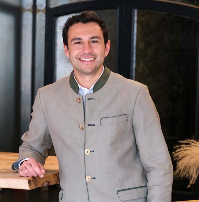 „Ich liebe den direkten Kontakt mit den Gästen und die Rolle als Gastgeber“, sagt Marcel de Alwis. Schon als Kind hat er es genossen, wenn er im Biergarten Getränke austragen durfte. Bis heute sorgt er leidenschaftlich gern dafür, Menschen eine gute Zeit zu bereiten. Am liebsten daheim im Schlierseer Hof mit kreativen Ideen und einer Mischung aus Tradition und neuen Impulsen. Das „Walters am See“ hat sich schnell als Treffpunkt für Junggebliebene etabliert. Ganz neu gibt es im frisch renovierten Restaurant mit Seeblick Frühstück mit Aussicht und einen Ort, um sich an SchlechtwetterTagen kulinarisch verwöhnen zu lassen. Dinge neu denken, Konzepte entwickeln und sich immer wieder neu erfinden machen für den 27-Jährigen den besonderen Reiz des Berufes aus, der für ihn Berufung ist und den er von der Pike auf gelernt hat. Mit 14 Jahren wechselte er nach Kleßheim ins Internat mit Hotelfachschule. Spätestens dort habe er für sich entschieden: „Das ist genau mein Weg.“ Der führte ihn nach dem Abitur zu Praktika bei renommierten Häusern im Ausland, etwa dem Four Seasons in Prag, um international Erfahrung zu sammeln.