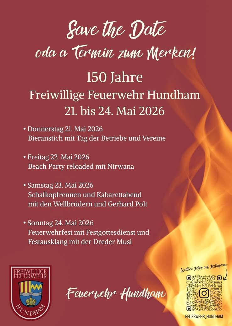 Feiern dürfen wir ebenfalls: Die Freiwillige Feuerwehr Hundham begeht ihr 150-jähriges Jubiläum mit einem großen Rahmenprogramm – ein Fest für das ganze Dorf und ein starkes Zeichen für Zusammenhalt und Ehrenamt. Und auch in Miesbach gibt es Grund zur Freude: Kalla Fashion feiert sein 10-jähriges Bestehen. Ein schönes Beispiel dafür, wie Leidenschaft, Stilbewusstsein und Unternehmergeist unsere Orte lebendig halten.
