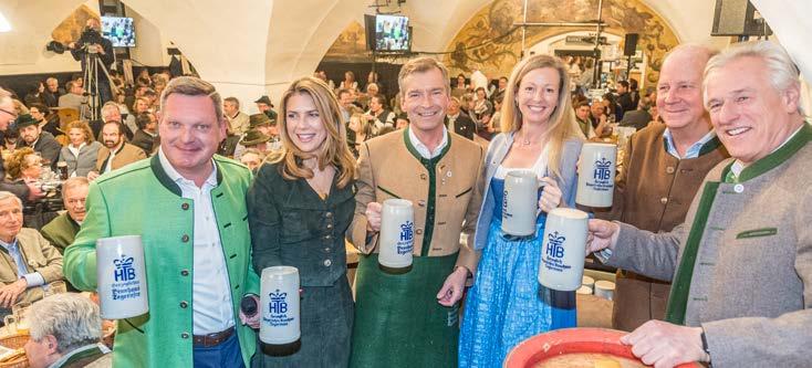 Bräustüberlwirt Peter Hubert mit Caterina, Landrat Jens Zangenfeind, Herzogin Anna in Bayern mit Ehemann Andreas von Maltzan, Braumeister Norbert Stühmer