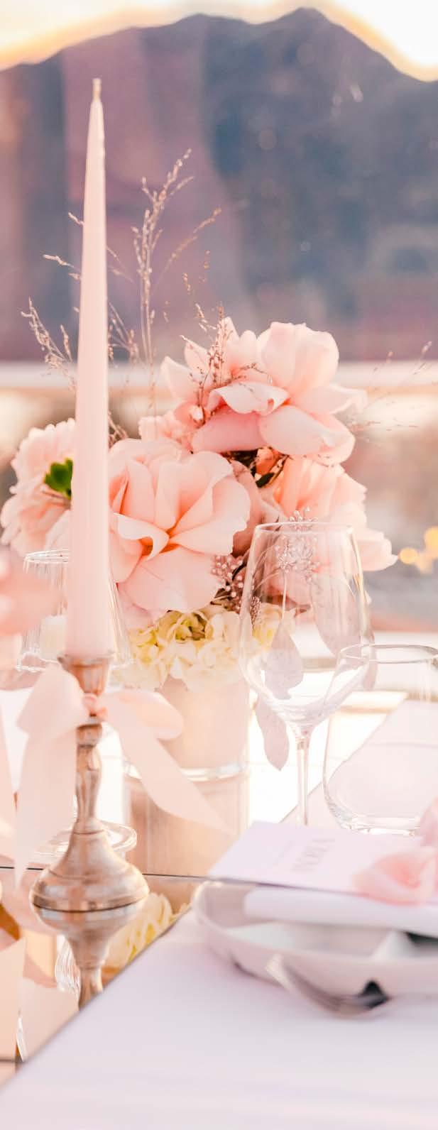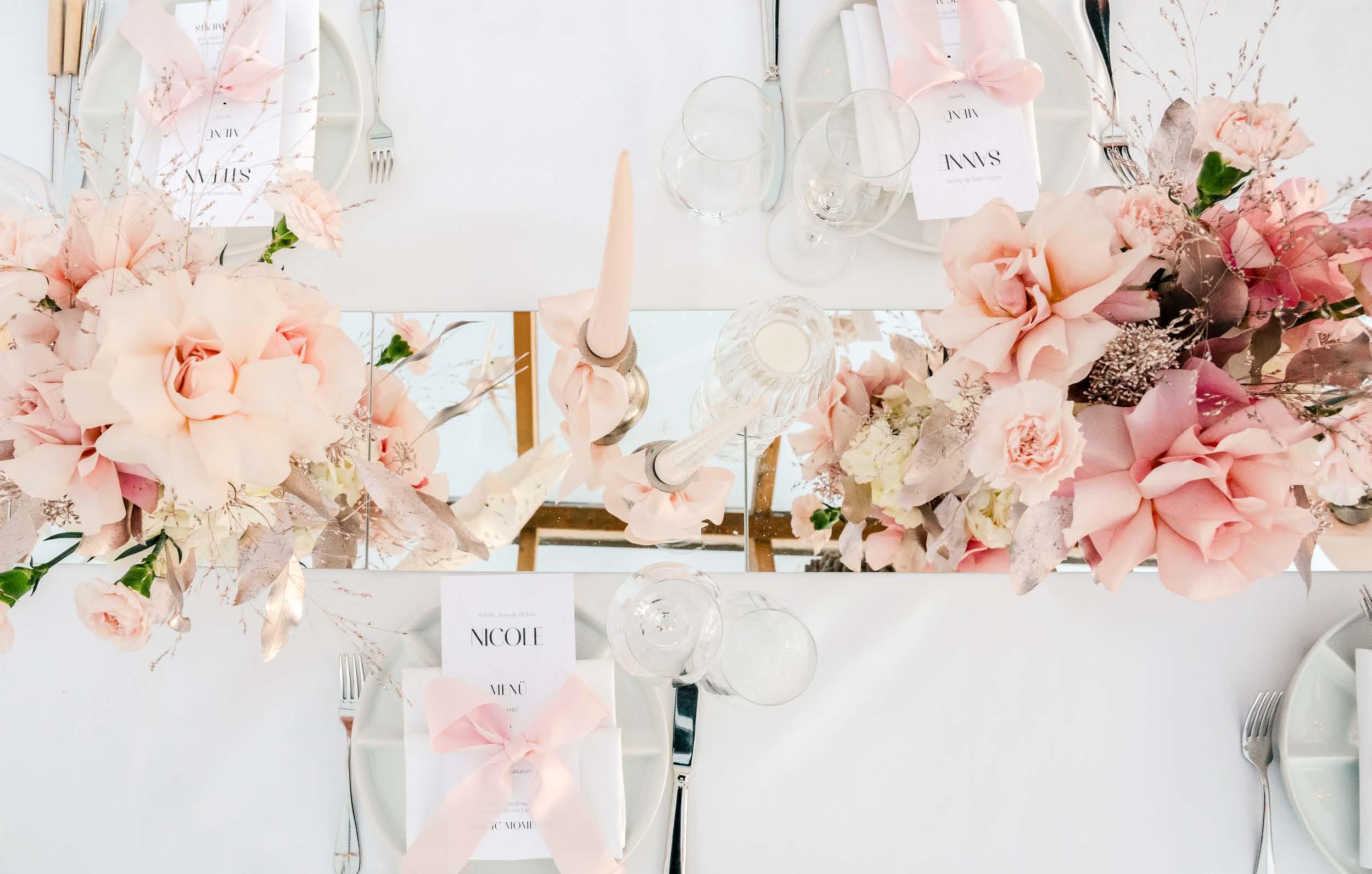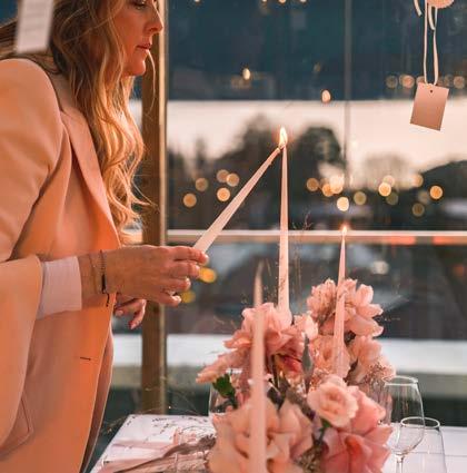 Liebe Désirée, zum Auftakt der neuen Hochzeitssaison möchten wir das Jahr 2025 noch einmal Revue passieren lassen: Was habt ihr erleben dürfen? Wir blicken auf eine starke Saison mit großartigen Aufträgen das ganze Jahr über, wundervollen Brautpaaren und fein abgestimmten Konzepten für jeden Geschmack, jede Größenordnung und jede Jahreszeit. Wir haben einmalige Momente für die Ewigkeit begleiten dürfen, geprägt von kraftvollen Wow-Momenten wie auch wertvollen AhaErlebnissen, die uns weitergebracht haben. Wilde Windund Wetterkapriolen konnten wir mit ausdrucksstarken Blumendekorationen auffangen. Selbst logistische Herausforderungen wie die Großbaustelle am Ostufer zwischen Gmund und Tegernsee haben wir gemeistert. Nächtlicher Einsatz war gefragt, um die Blumen rechtzeitig zur jeweiligen Location zu bringen und bei ‚Nacht und Nebel‘ aufzubauen.