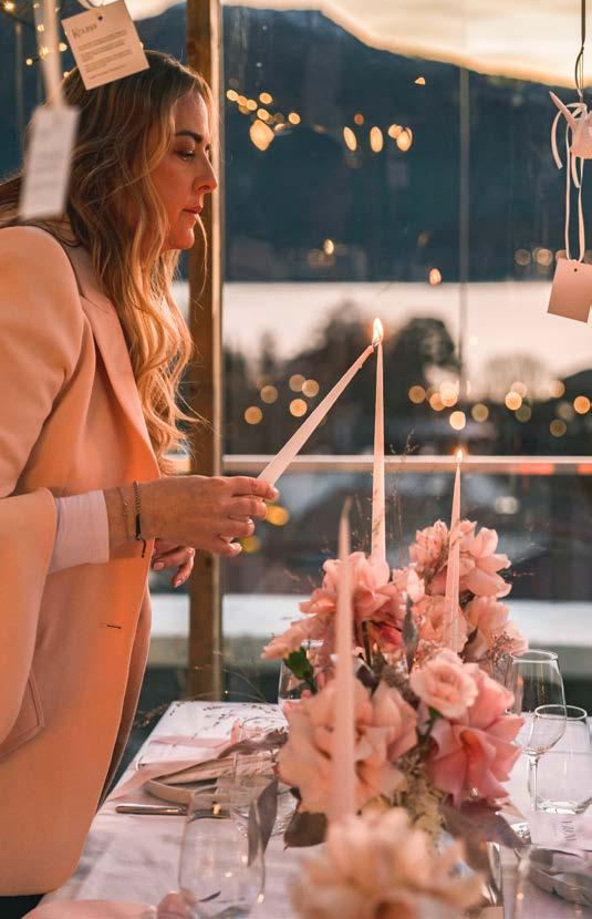 Gerade bei kleinen Feierlichkeiten kann man viel Individualität und sehr besondere Momente einfangen und mit superschönen Details arbeiten, die bei großen Events oft gar nicht möglich sind. Dazu zählen beispielsweise persönliche Love Letters für die Gäste oder ein besonders exklusiver und extravaganter Einsatz von Produkten. Das Tegernseer Tal bietet dafür die passenden Locations, sei es in einem Bootshaus direkt am See oder in einem kleinen Chalet auf einem Rooftop. Da durfte ich erst kürzlich ein Event planen und realisieren – ein Abend vor herrlicher Berg- und Seekulisse, der noch lange nachhallt.