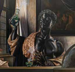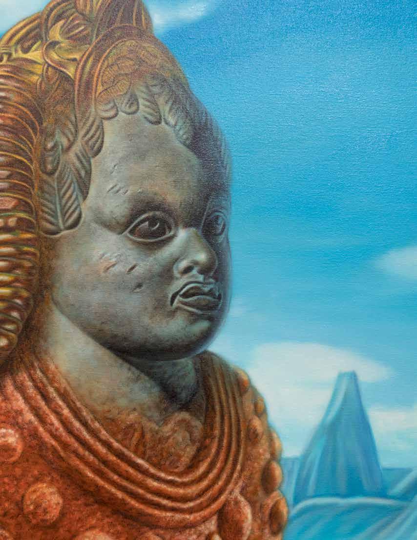 Submersia presents a series of new paintings that incorporates various bronze, glass and terra-cotta objects that depict Aethiops – a Greek term used in ancient texts that translates to “blazed
