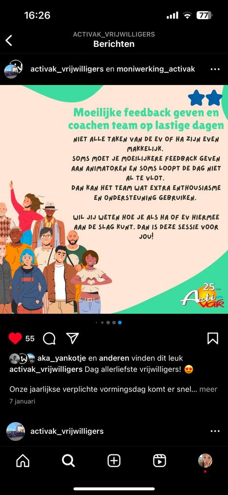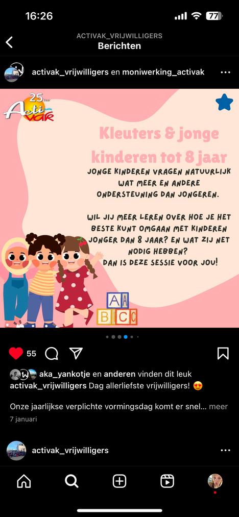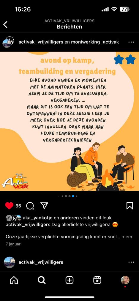 “ik kom van een andere jeugd organisatie. deze werkte niet met vrijwillegers. ik wou een job hebben waar je met hun in cont komt. ik zach d de vacature va activak en die sprak me wel aa