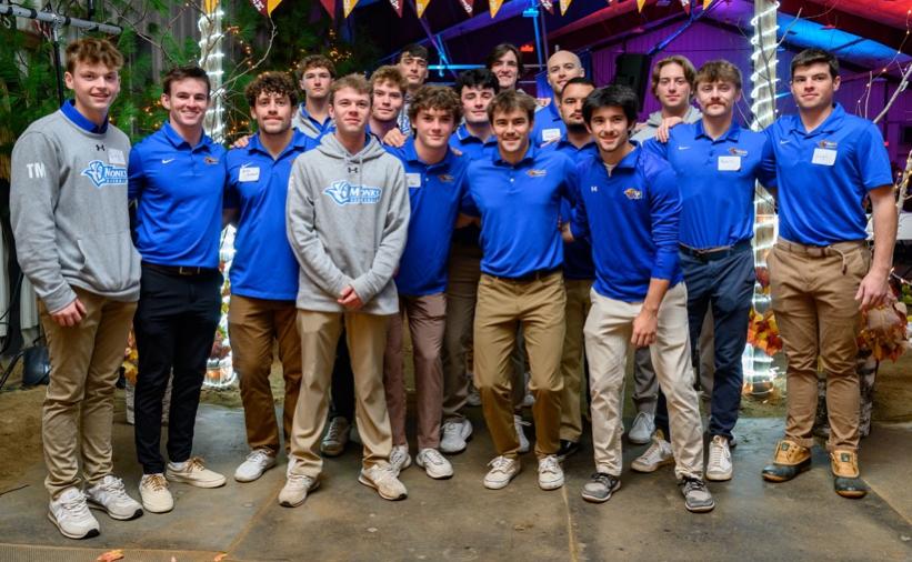 Back (L -R): Randy Henry, Chris Dion, Je2 Yaeger, Matt Martinello, Matt Po2, Luke Stephens, Sam Jalbert, Matt Thibault, Sean McDonough, Pat Moran, Kevin Aylward, Dustin Spiller, Chris Doughty Front (L -R): Will Sanborn, Liam Sanborn, Jameson Collins, Lincoln Sanborn, Nolan Beckwith, Matt Esposito, Jackson Stanton, Tyler Currier, Jake Laplume, Zach Miles, Brian Schools, Corey McCarthy (Photo credit: Laurel Clace ’25)