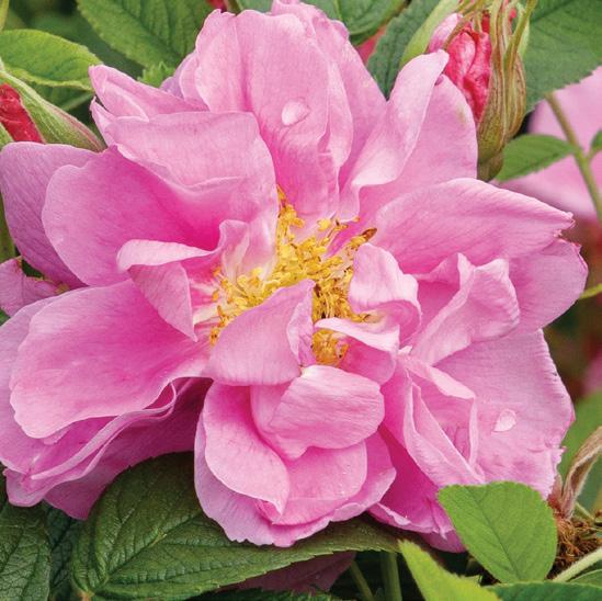 BLOOMS: Summer through fall MATURE SIZE: 5’ tall, 4’ wide GROWTH RATE: Moderate BLOOM TYPE: Double Care Guide: Thrives in loamy, welldrained soil. Avoid watering overhead. Feed before new growth begins in spring; repeat mid-season.