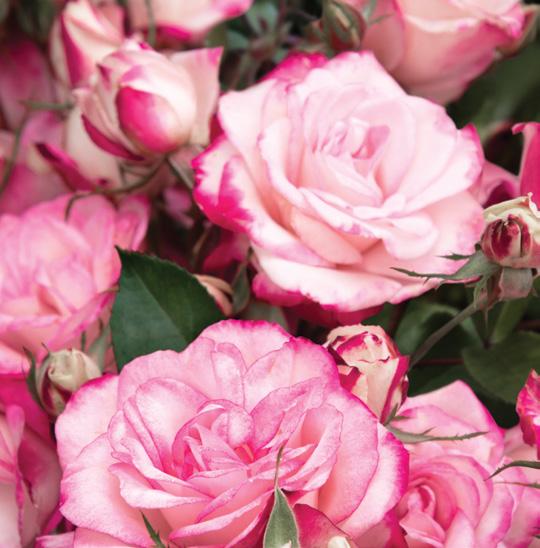 Stunning bouquets of pink and white bicolor roses on deep green shrubs. Ideal in mixed borders for longseason color. Wonderful in patio tree form.