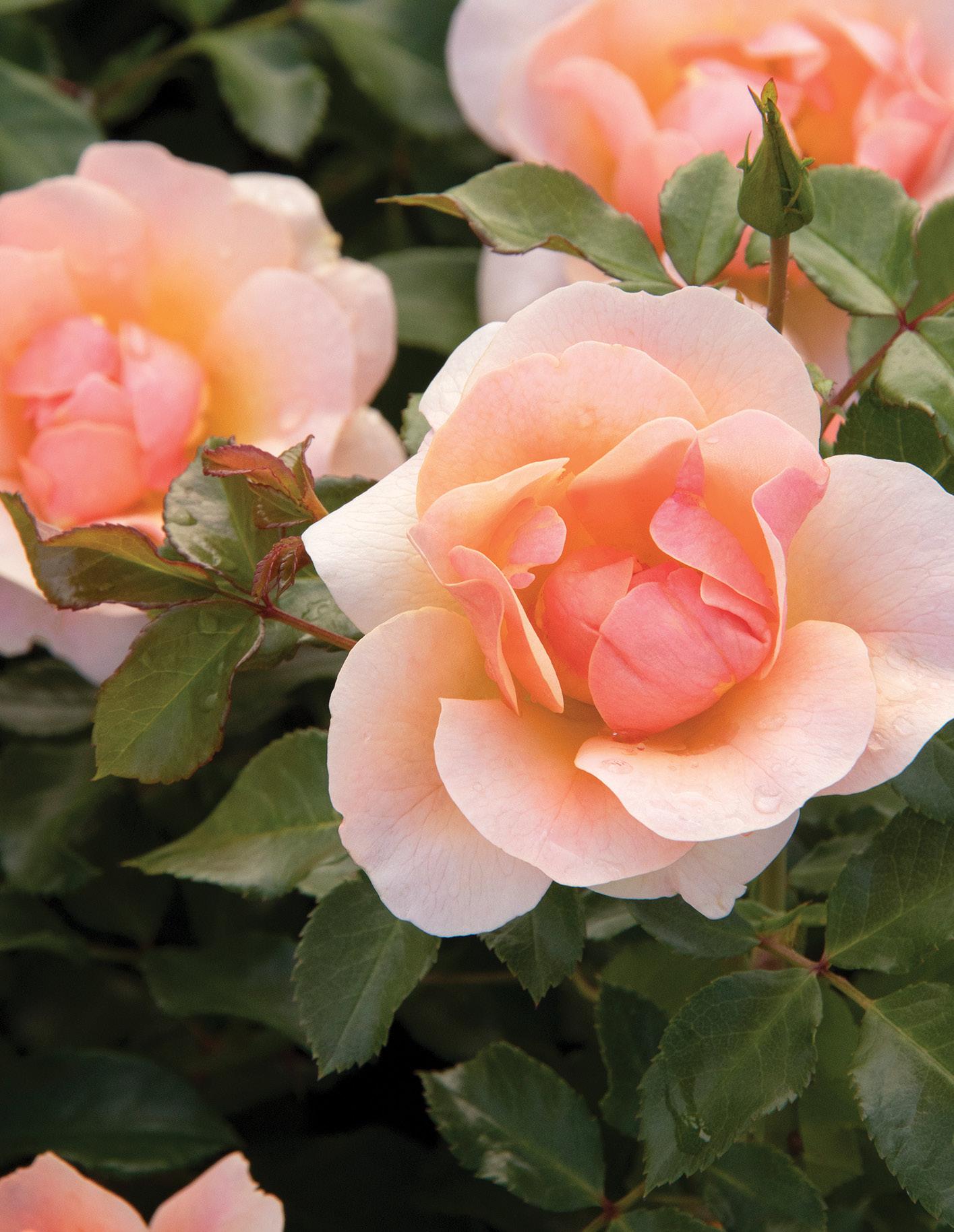 Today’s gardeners are seeking a more refined cottage look, which we call the “New Victorian,” that features climbing roses and groundcover or shrub types, particularly in white, blush, pink, and peach. Planting roses en masse creates a feeling of abundance.