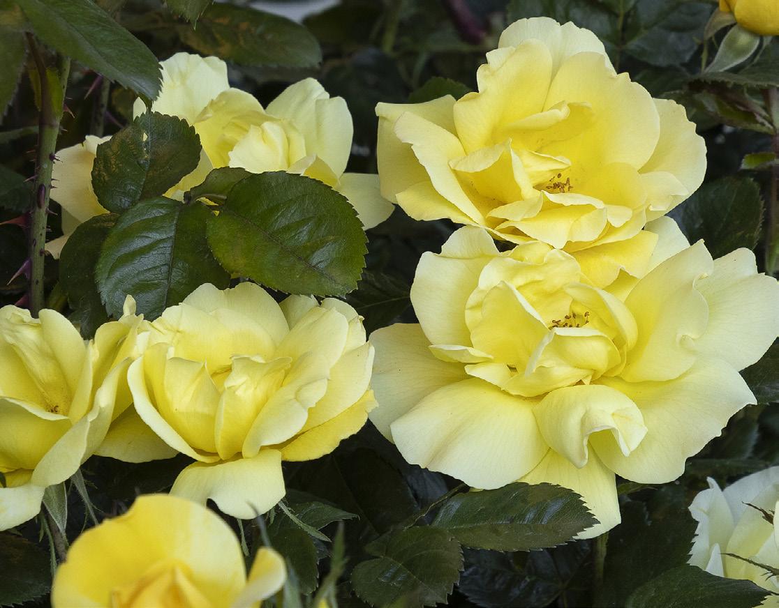 Soft color made a splash in the 1980s, showing up everywhere from windbreakers to big-shouldered blazers. This pastel-forward palette layers the buttery yellow blooms of Grace N’ Grit™ Yellow Rose (Zones 4-9) with the gentle pink of Pink Pearl Agastache (Zones 6-10) and the lavender of Royal Cape® Plumbago (Zones 9-11, or grow as an annual). Big Ears Lamb’s Ear (Zones 4-9) grounds the look with plush, pastel-green foliage that ties the palette together.