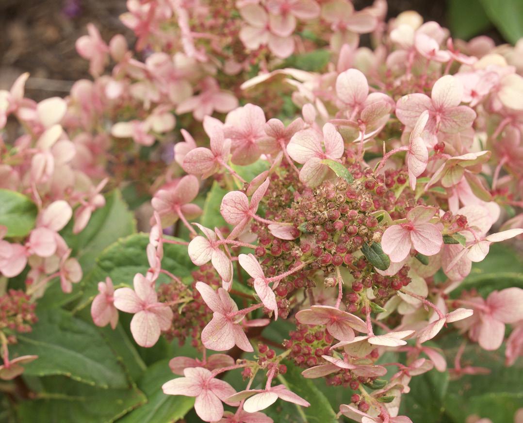 This Art Deco-inspired palette captures the effervescence of the 1920s with the champagne-colored blooms of Eau de Parfum® Bubbly Rose (Zones 5-10), and the modern metallics of Angel Wings Senecio (Zones 8-11, or grow as an annual) and Darkstar® Ninebark (Zones 4-8). Early Evolution® Hydrangea (Zones 4-9) finishes the look in 20s pink.